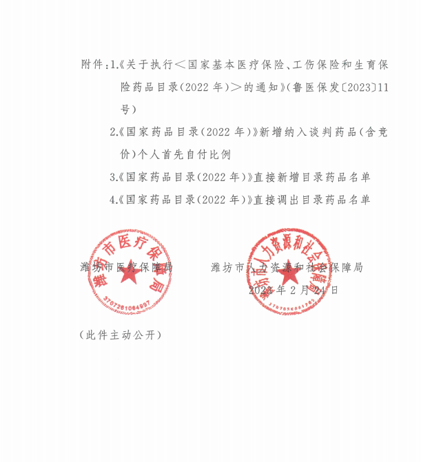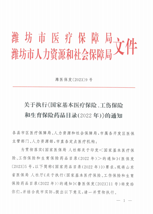 附件:1.《关于执行<国家基本医疗保险、工伤保险和生育保险药品目录(2022年)>的通知》(鲁医保发〔2023〕11 号)