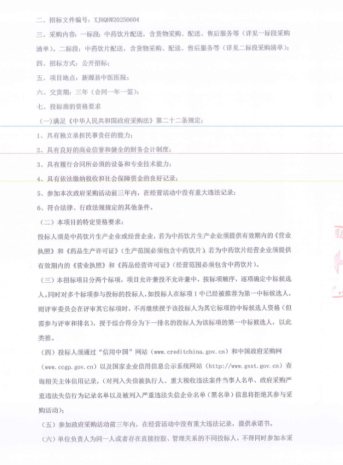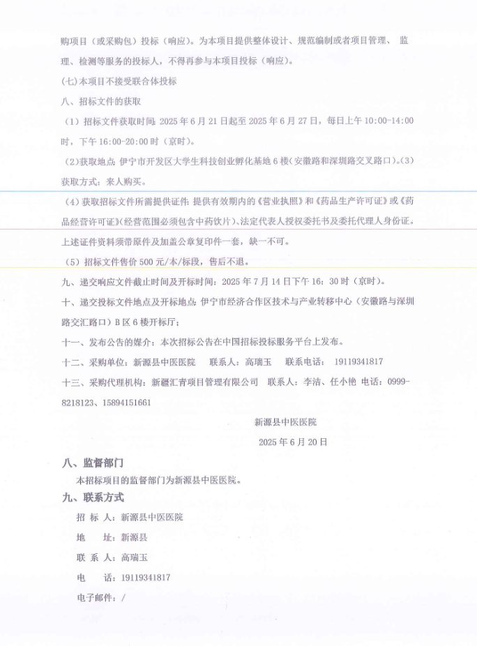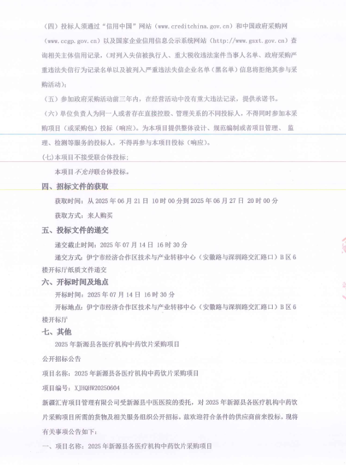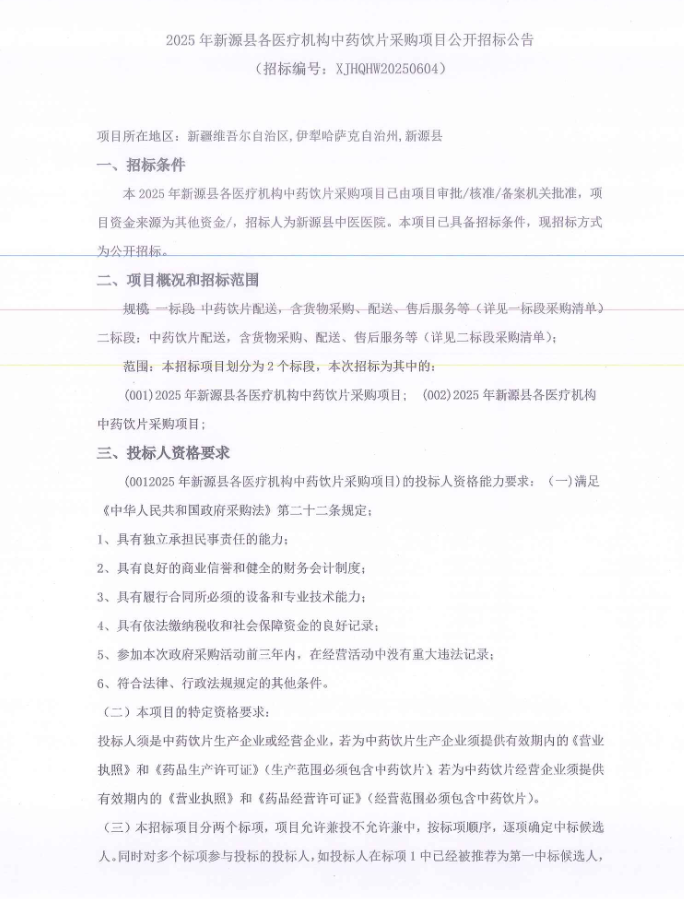 【伊犁哈萨克自治州新源县中医医院】新疆维吾尔自治区伊犁哈萨克自治州2025年新源县各医疗机构中药饮片采购项目公开招标公告