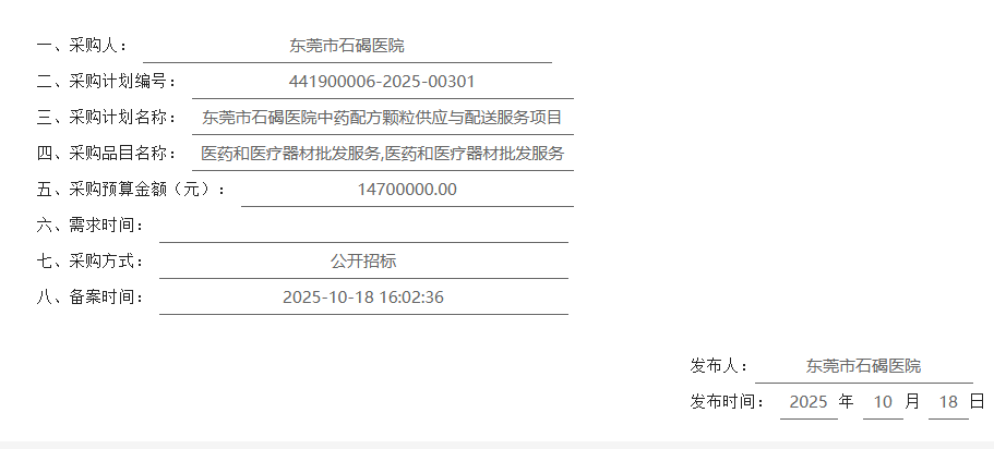 【东莞市石碣医院】广东省东莞市石碣医院中药配方颗粒供应与配送服务项目1