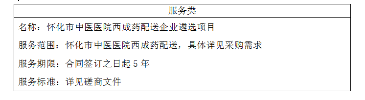 二、项目名称:怀化市中医医院西成药配送企业遴选项目(预算金额:按实际配送的品种、数量按实结算)。