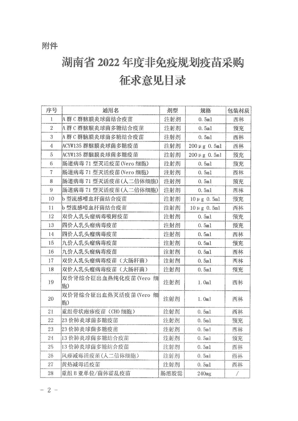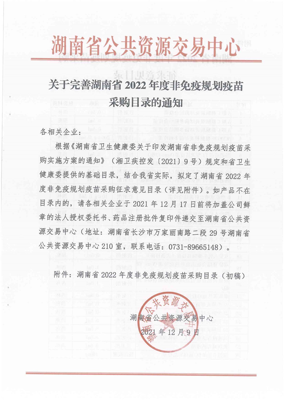 【湖南】关于完善湖南省2022年度非免疫规划疫苗采购目录的通知