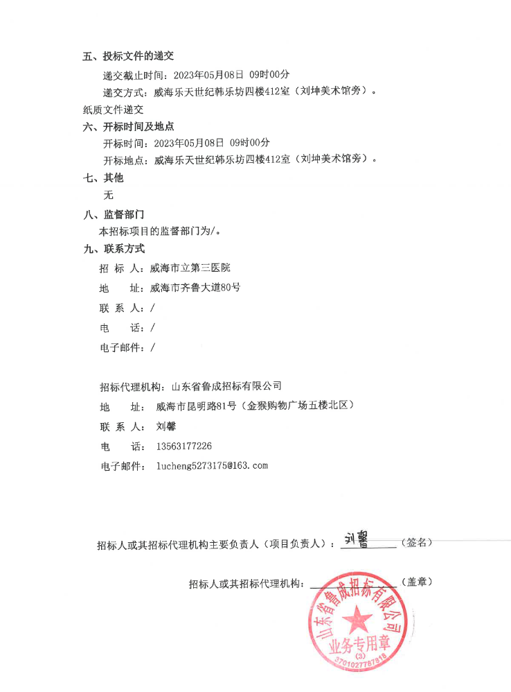 【威海市立第三医院】山东省威海市威海市立第三医院选定药品配送供应商项目公开招标公告