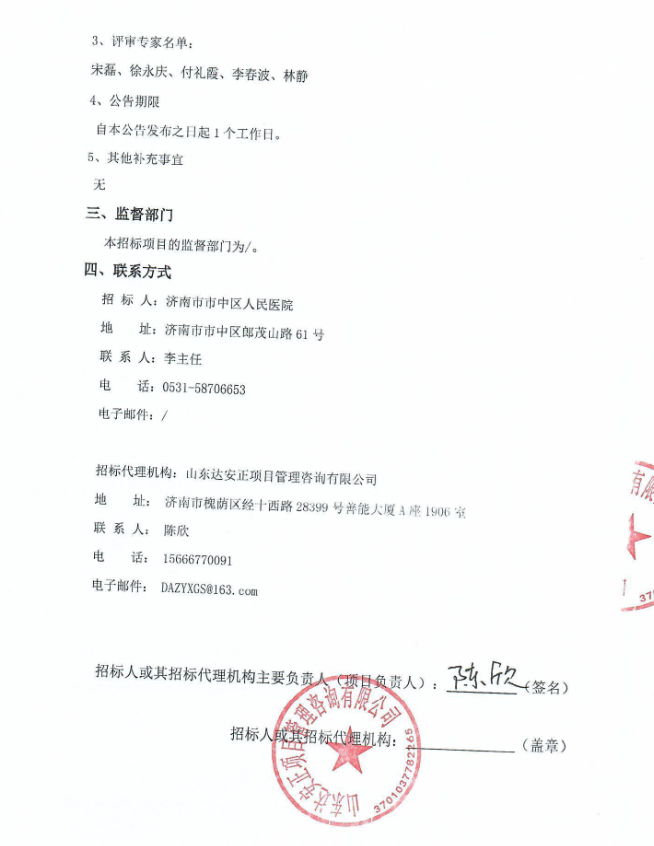 所属项目:山东省济南市市中区人民医院院标