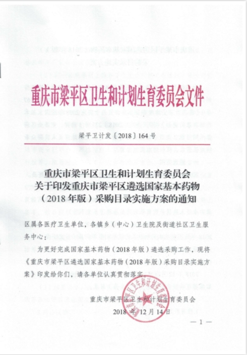 【重庆】2018年重庆市梁平区卫计委关于印发重庆市梁平区遴选国家基本药物(2018年版)采购目录实施方案的通知