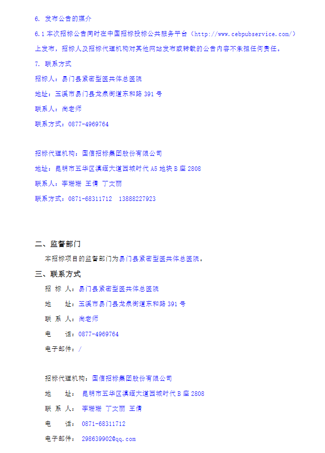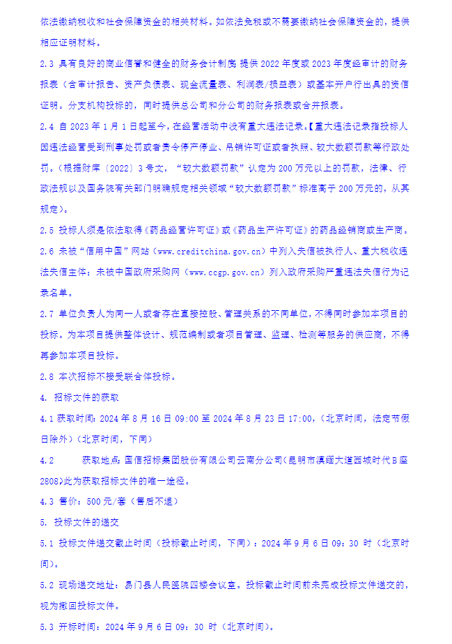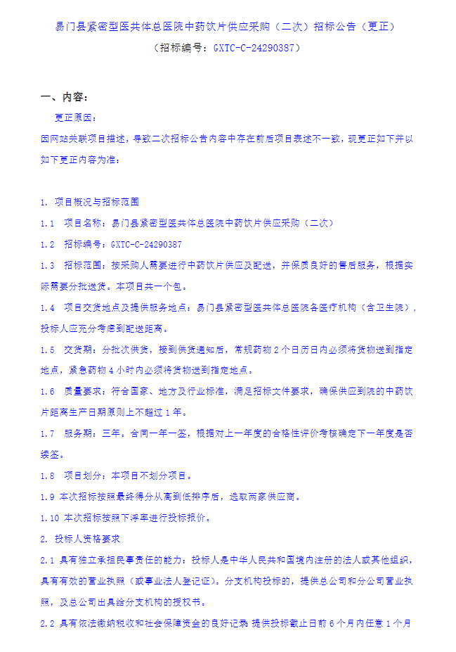【易门县紧密型医共体总医院】云南省玉溪市易门县紧密型医共体总医院中药饮片供应采购(二次)招标公告(更正)