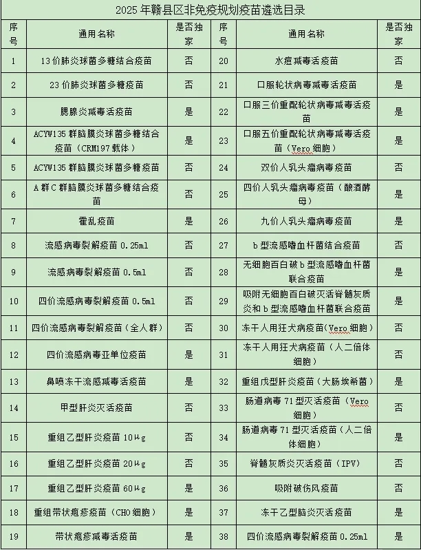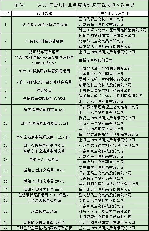 详见附件:《2025年赣县区非免疫规划疫苗遴选拟入选目录》。