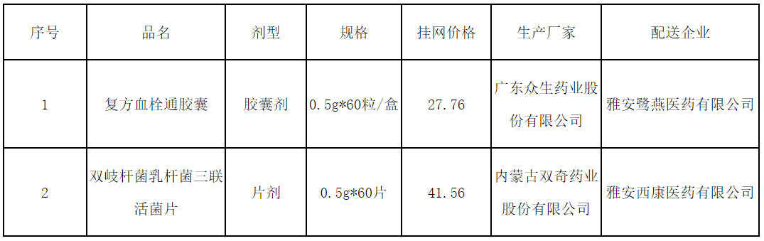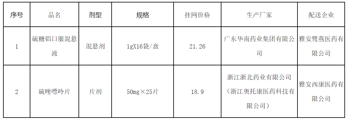 【雅安职业技术学院附属医院】四川省雅安职业技术学院附属医院部分药品引进公示(20250324)