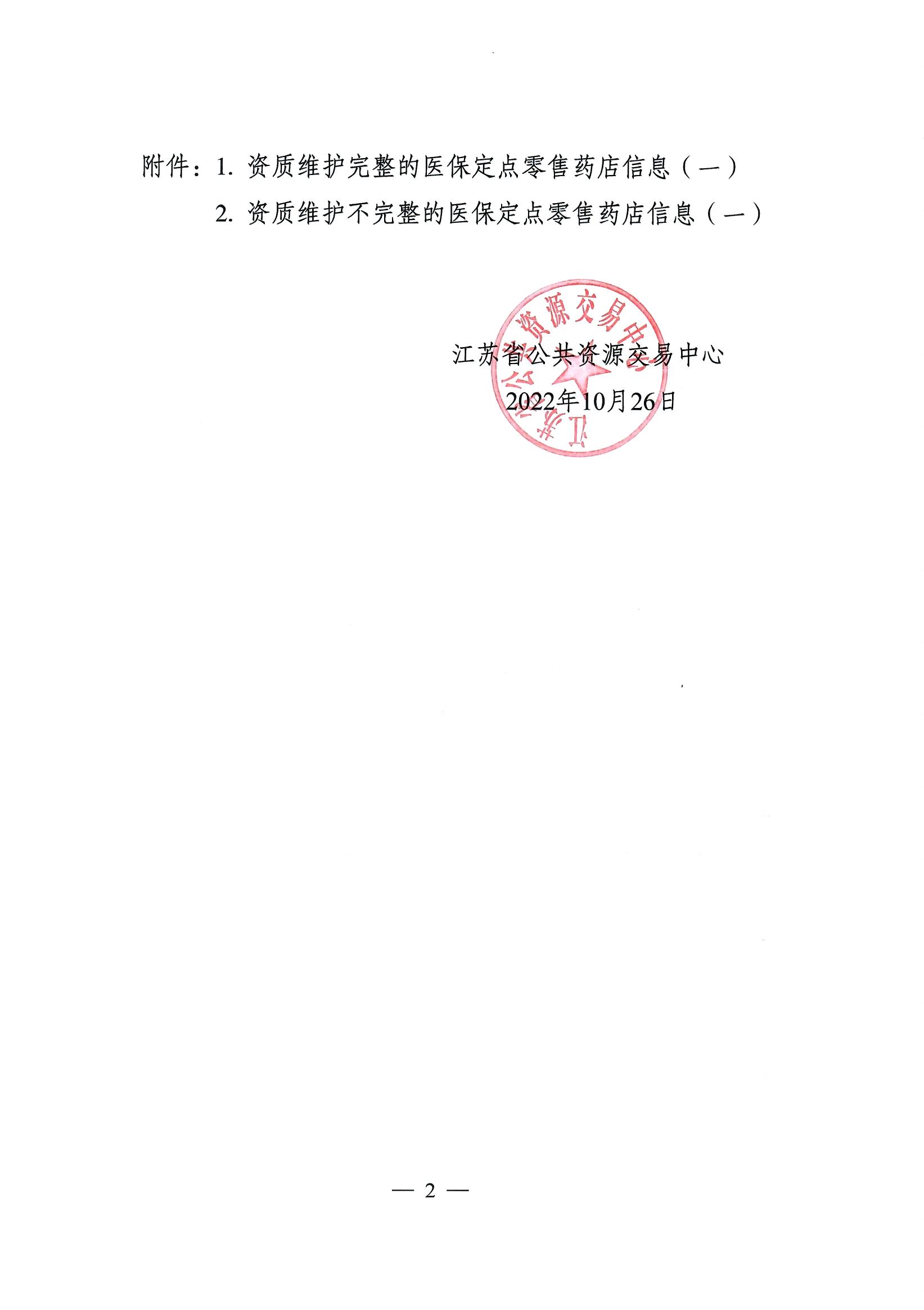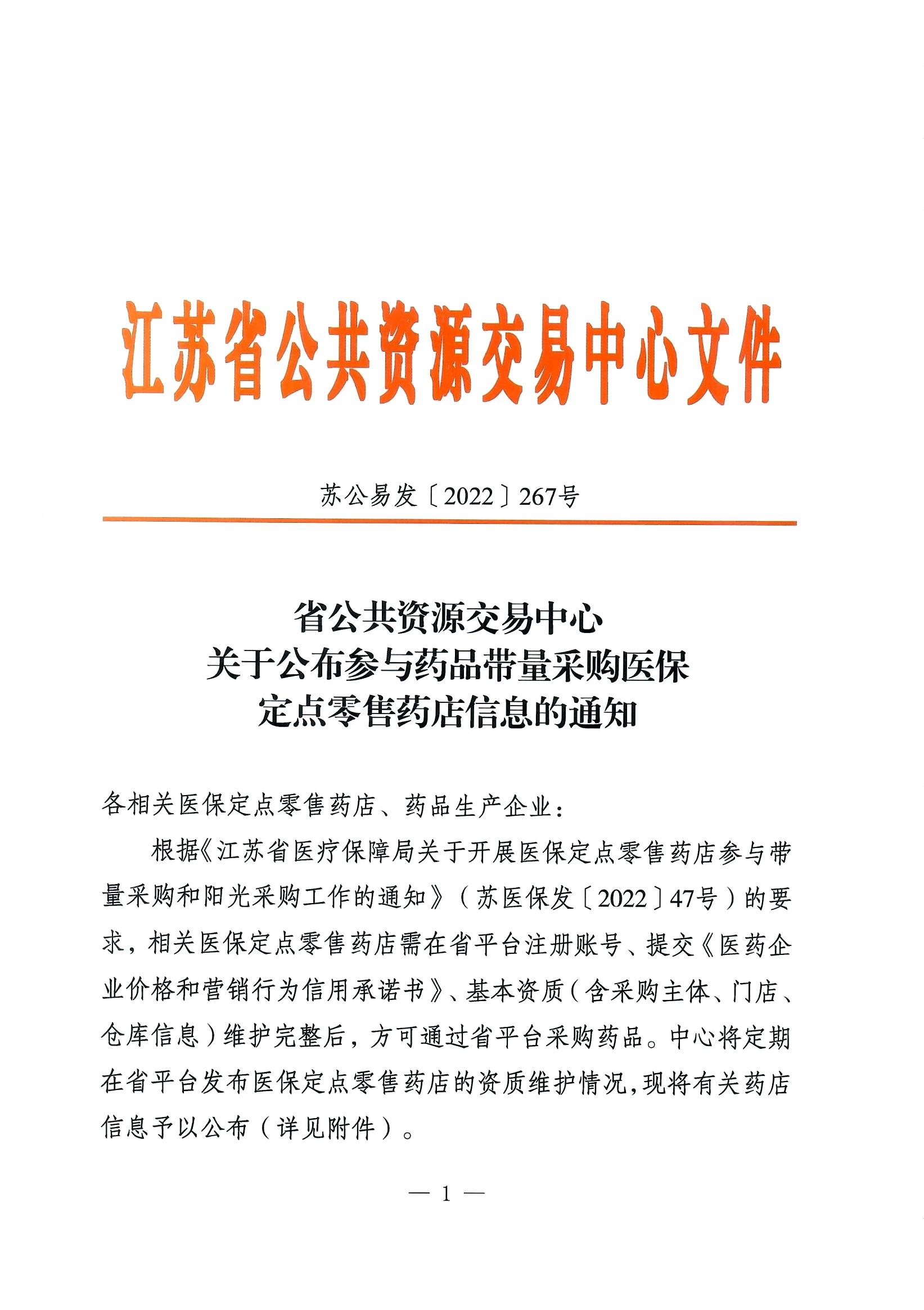【江苏】省公共资源交易中心关于公布参与药品带量采购医保定点零售药店信息的通知