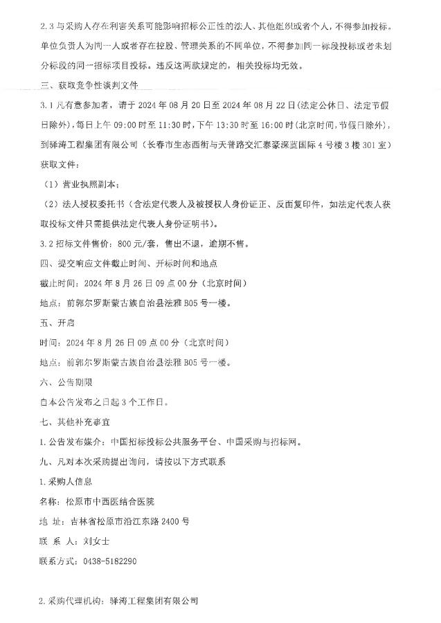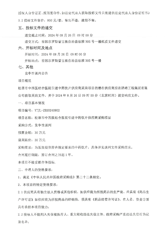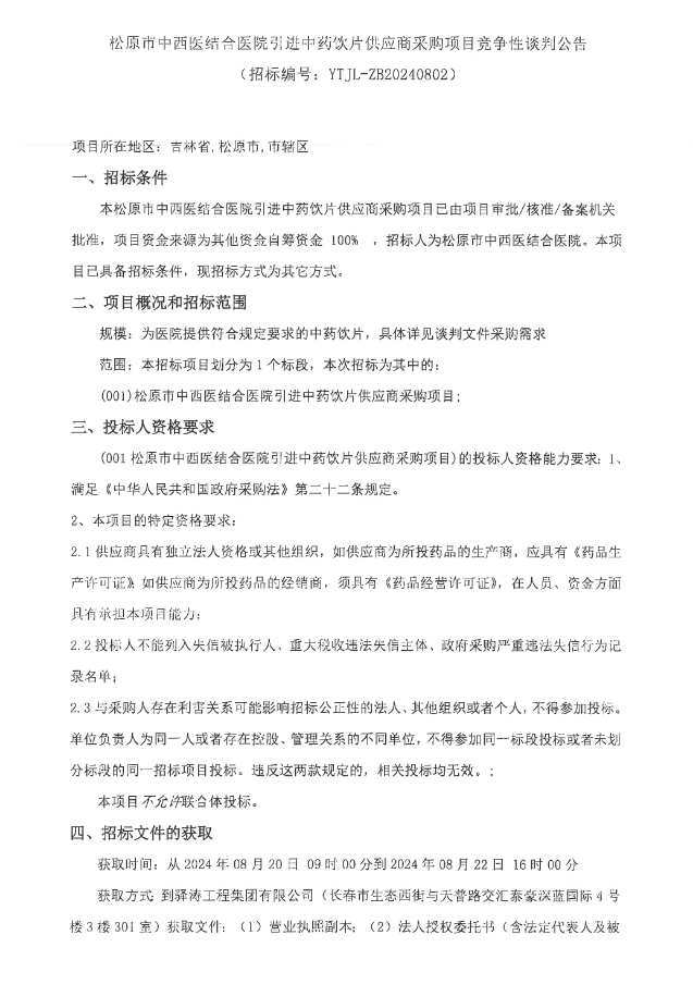 【松原市中西医结合医院】吉林省松原市中西医结合医院引进中药饮片供应商采购项目竞争性谈判公告