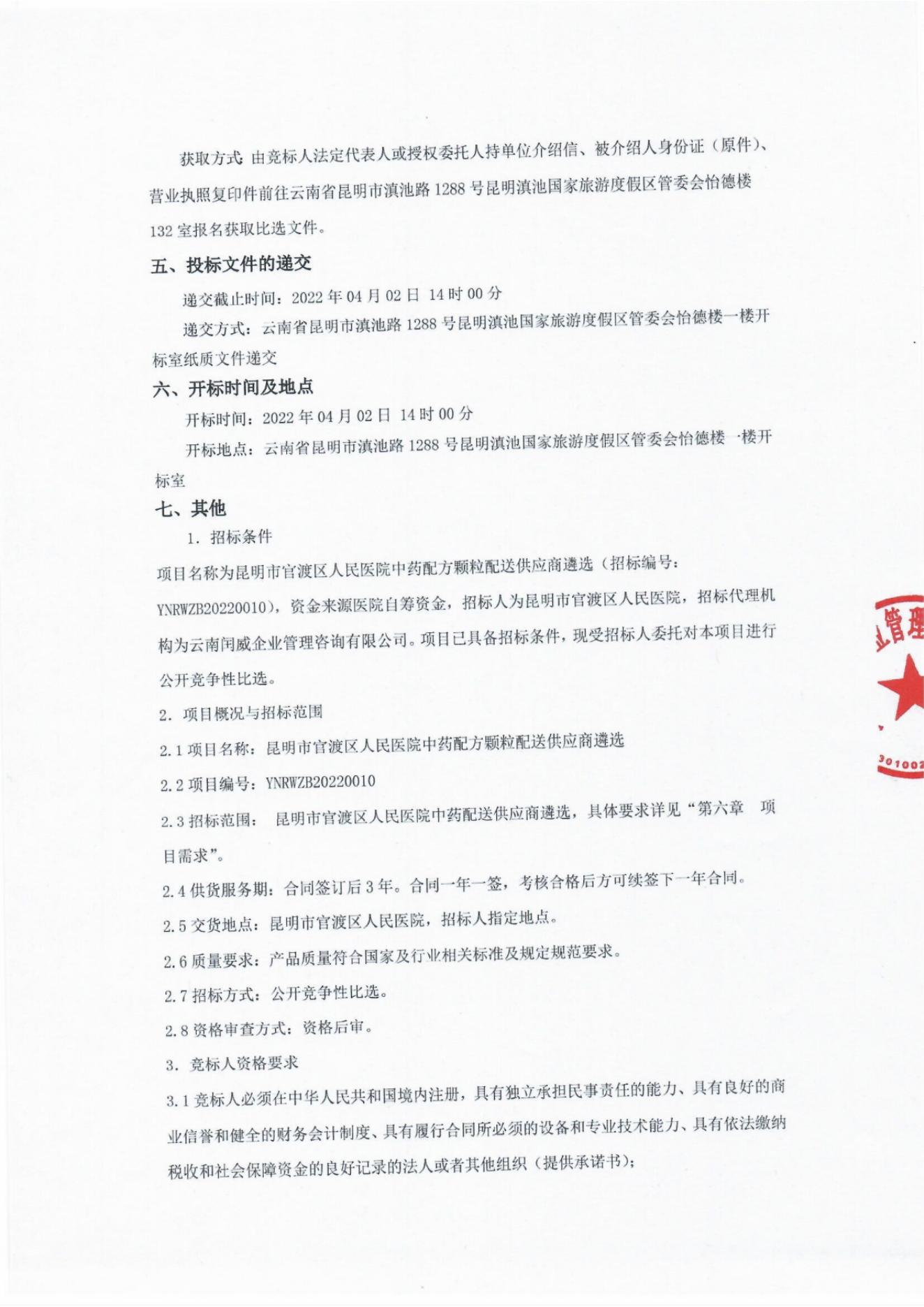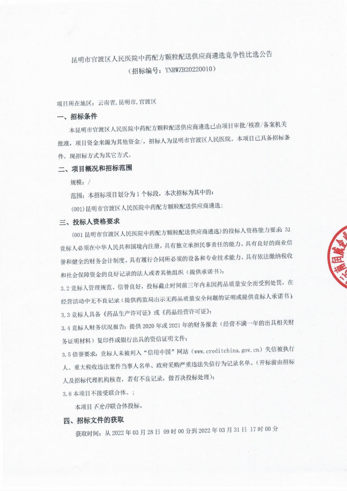 【官渡区人民医院】云南昆明市官渡区人民医院中药配方颗粒配送供应商遴选竞争性比选公告