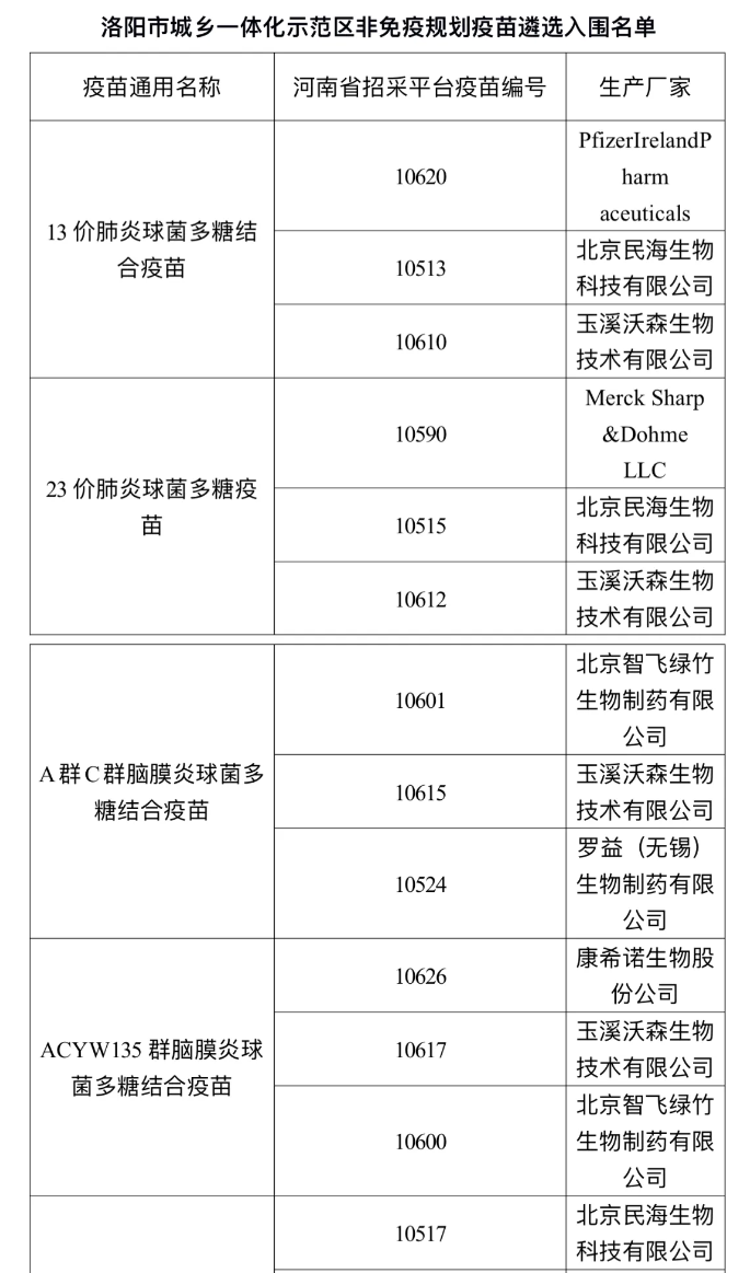 【洛阳】洛阳市城乡一体化示范区非免疫规划疫苗遴选结果公告
