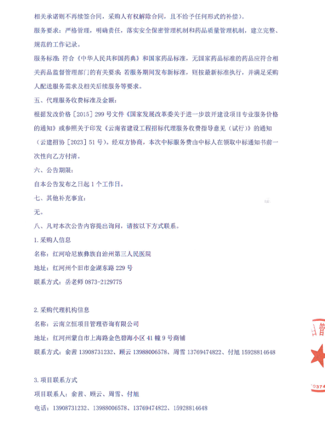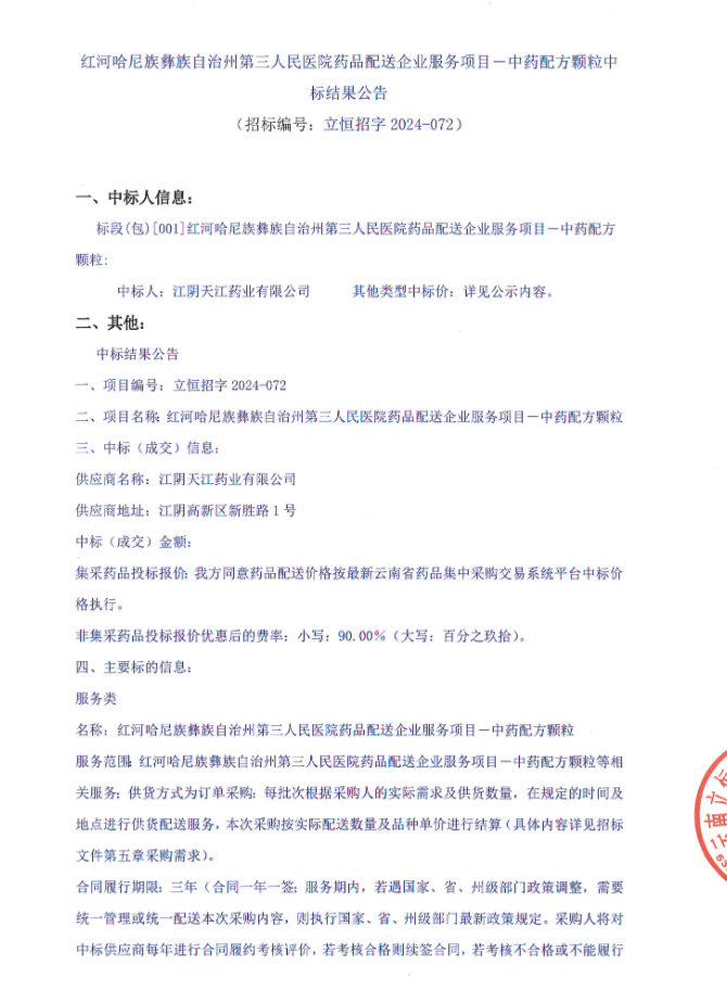 【红河哈尼族彝族自治州第三人民医院】云南省红河哈尼族彝族自治州第三人民医院药品配送企业服务项目-中药配方颗粒中标结果公告
