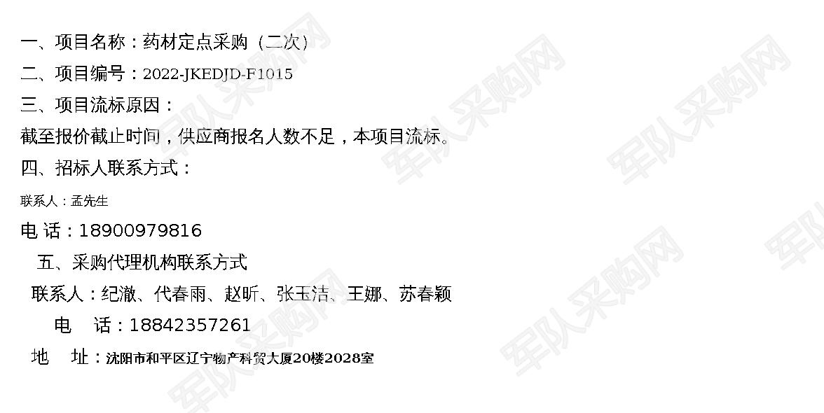 【军队采购网】药材定点采购(二次)2022-JKEDJD-F1015