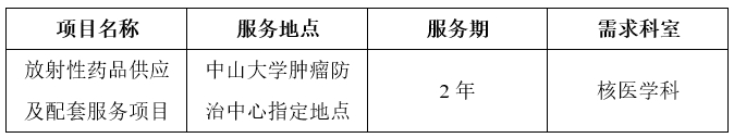 1、项目名称:中山大学肿瘤防治中心放射性药品供应及配套服务项目