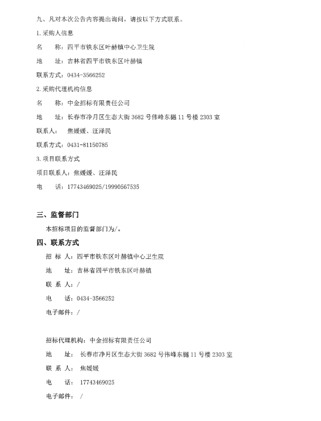 所属项目:吉林省四平市铁东区叶赫镇中心卫生