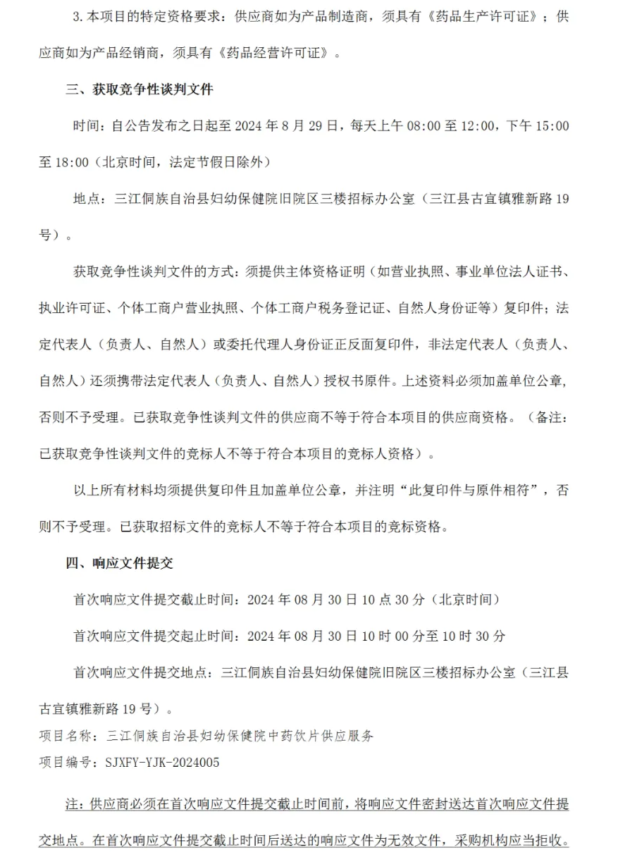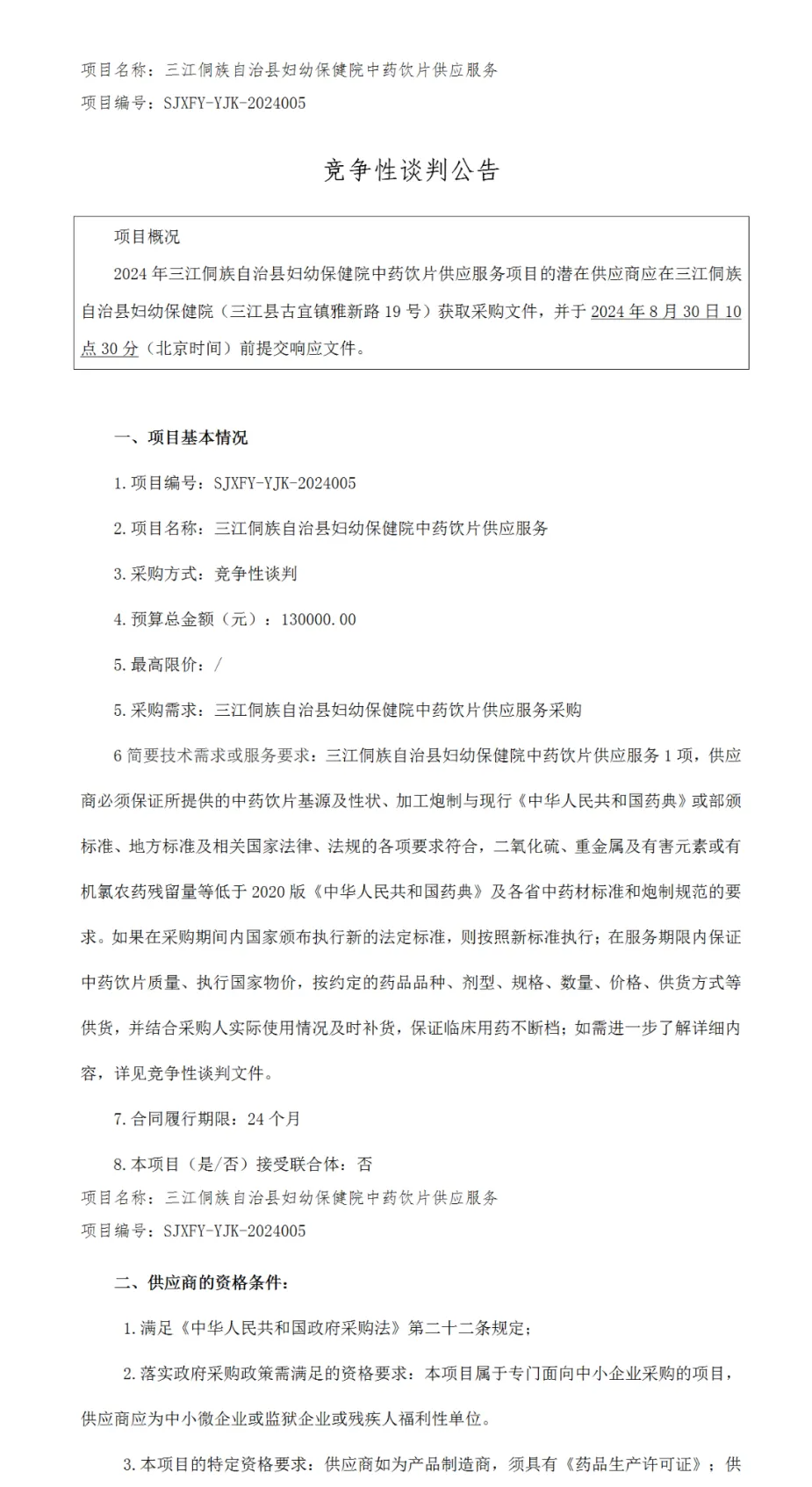 【柳州市三江县妇幼保健院】广西壮族自治区柳州市三江县妇幼保健院关于中药饮片供应服务采购的竞争性谈判公告