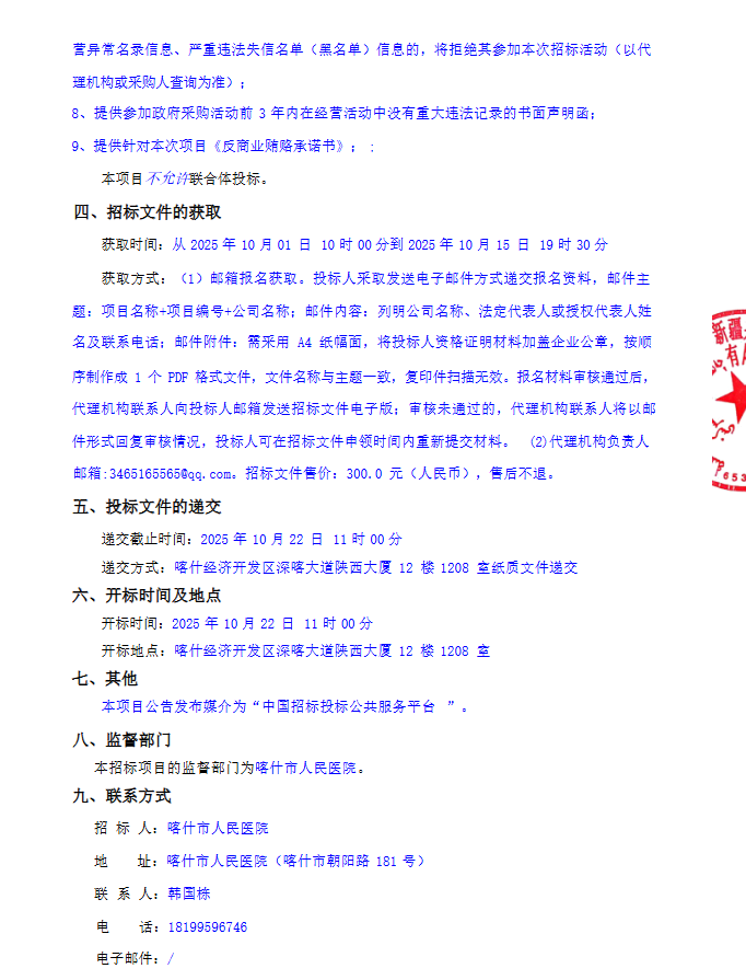 所属项目:新疆维吾尔自治区喀什市人民医院院