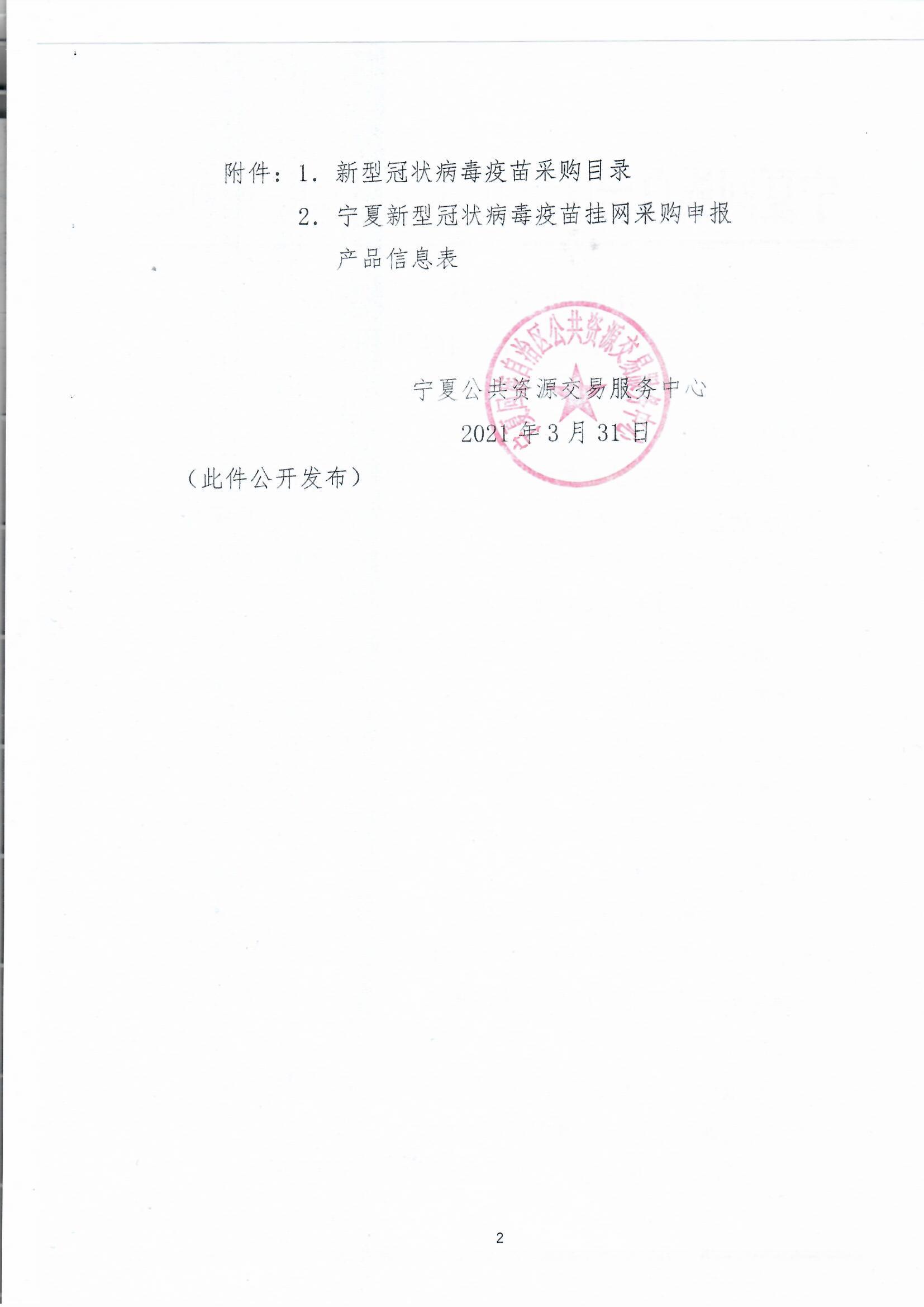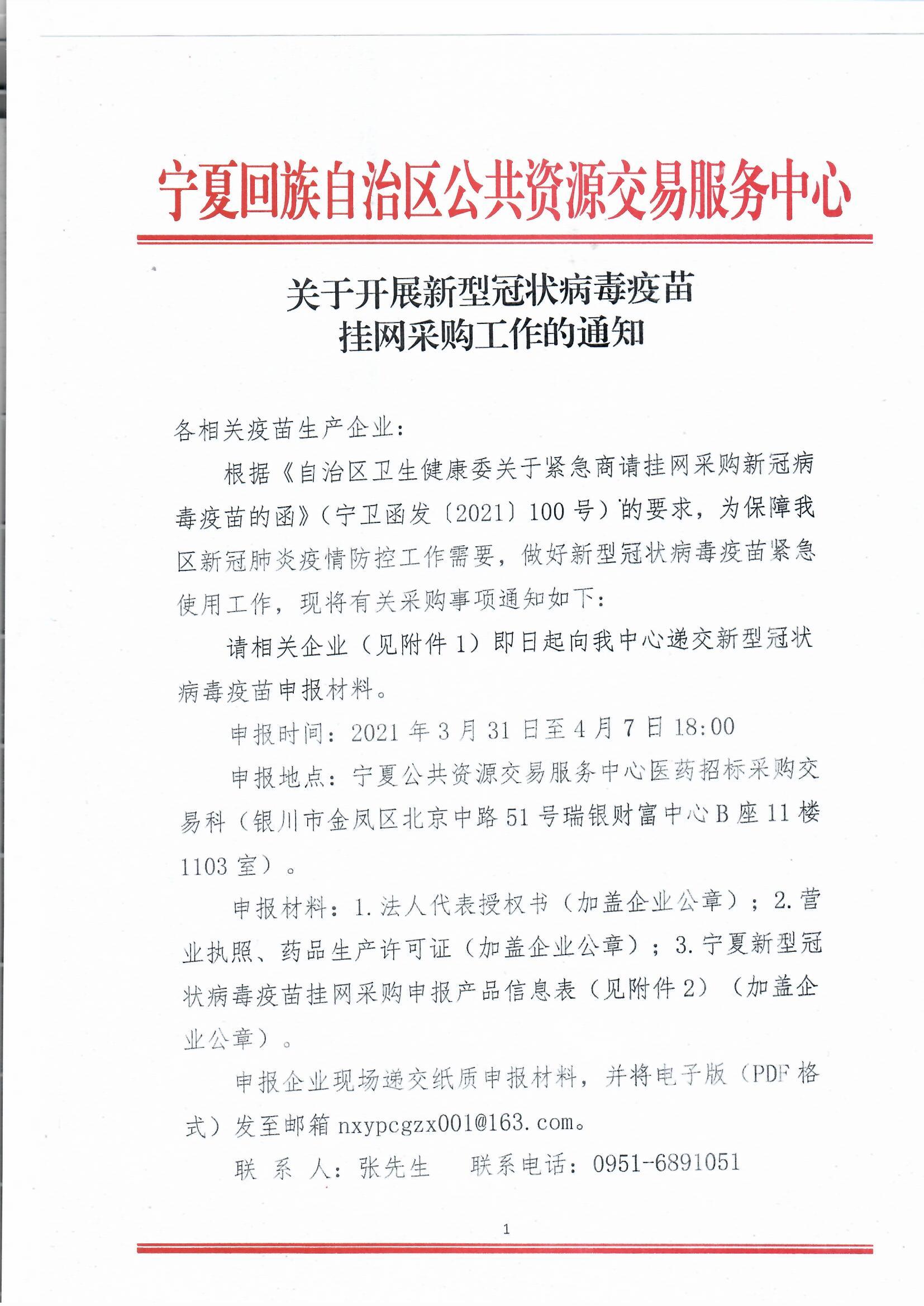 【宁夏】2021年宁夏自治区关于开展新型冠状病毒疫苗挂网采购工作的通知