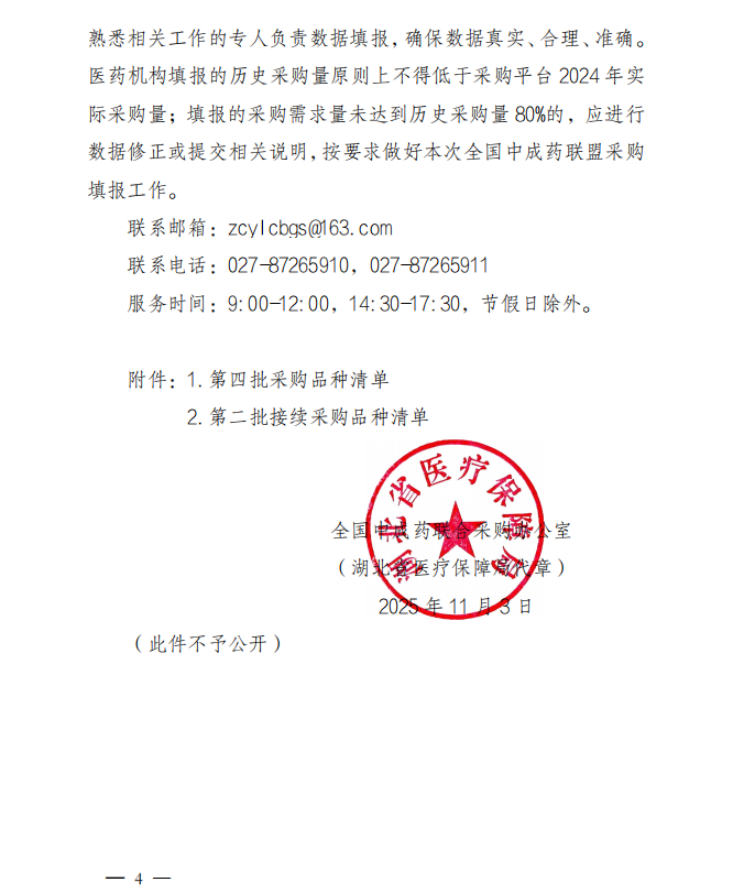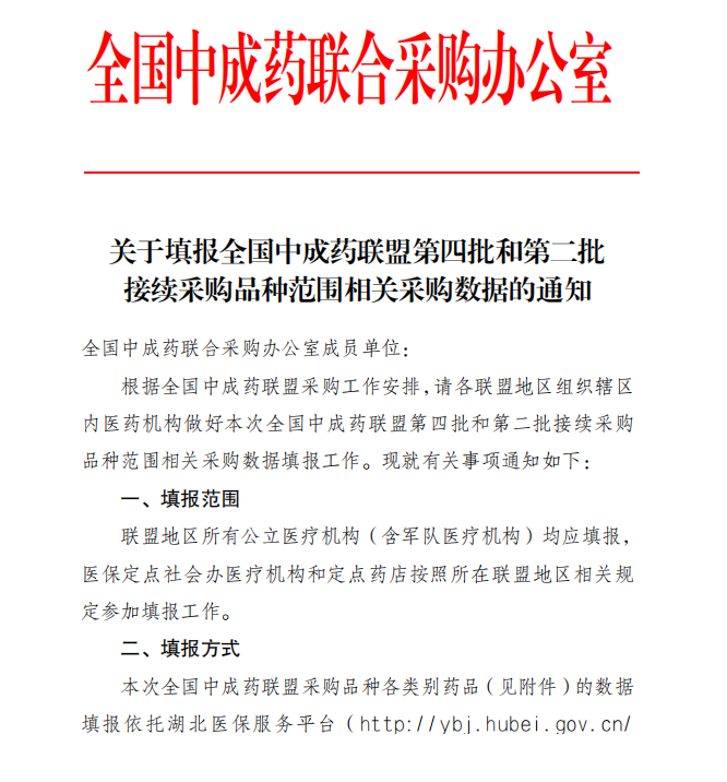 【国家】关于填报全国中成药联盟第四批和第二批接续采购品种范围相关采购数据的通知
