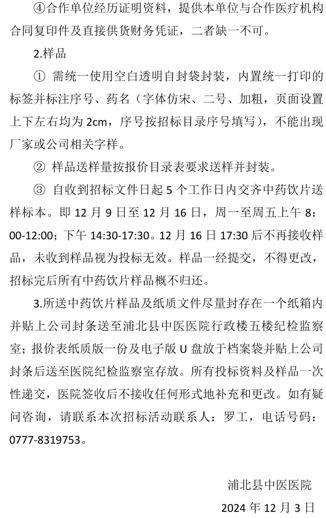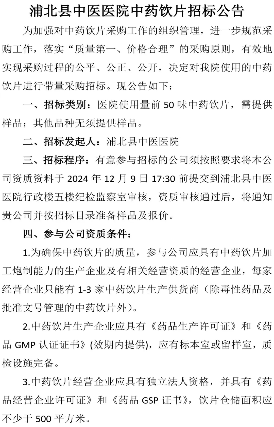【钦州市浦北县中医医院】广西壮族自治区钦州市浦北县中医医院中药饮片招标公告