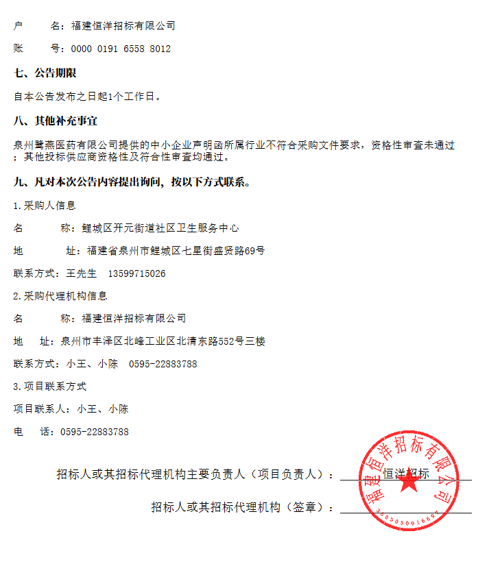【泉州市鲤城区开元街道社区卫生服务中心】福建省泉州市鲤城区开元街道社区卫生服务中心中药饮片配送企业遴选项目中标(入围)结果公告