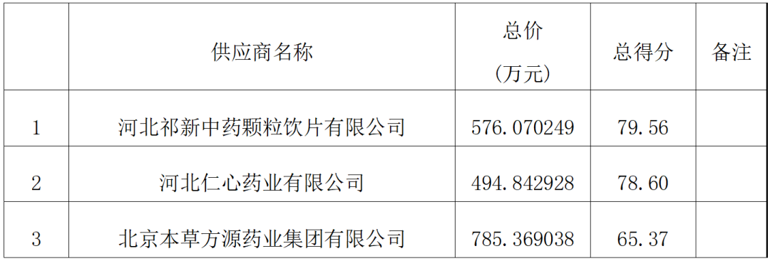 五、参与投标单位:国药集团北京华邈药业有限公司、河北祁新中药颗粒饮片有限公司、河北蔺氏盛泰药业有限公司、北京本草方源药业集团有限公司、河北双宁药业有限公司、安国市聚药堂药业有限公司、河北仁心药业有限公司。