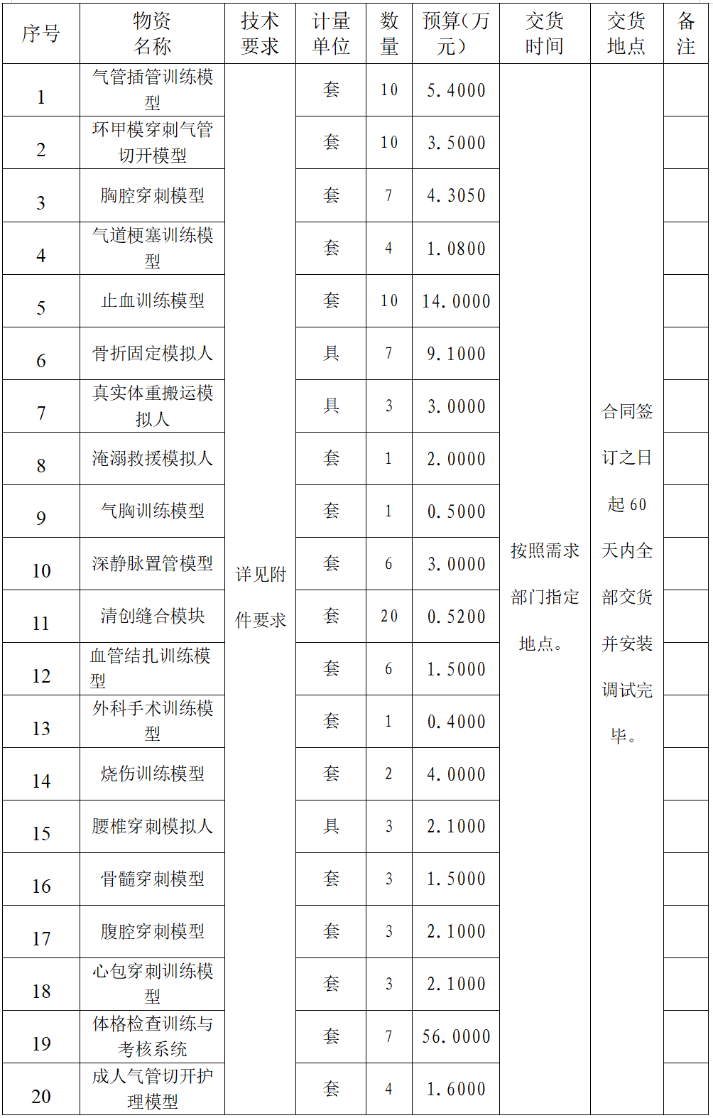 培训中心器材设备采购公告
