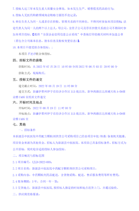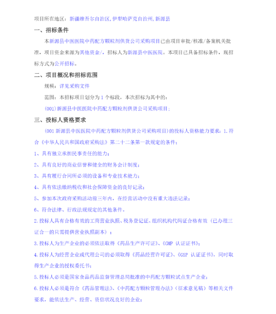 【新源县中医医院】新源县中医医院中药配方颗粒剂供货公司采购项目公开招标公告