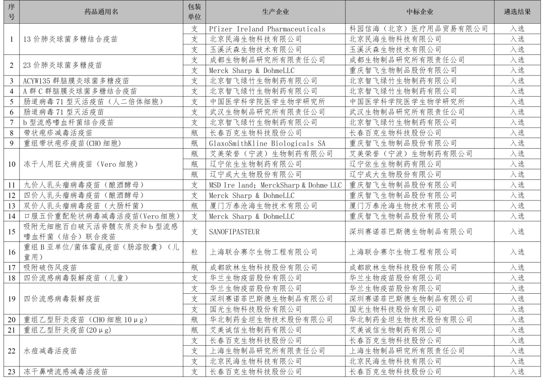 【定西】定西市安定区2024年非免疫规划疫苗遴选结果公示