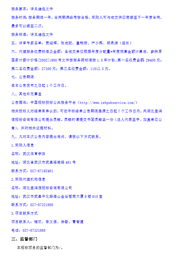【武汉体育学院】湖北省武汉体育学院校医院药品配送供应商遴选项目中标结果公告