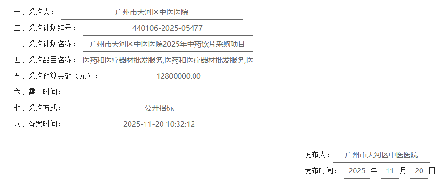 【广州市天河区中医医院】广东省广州市天河区中医医院2025年中药饮片采购项目1