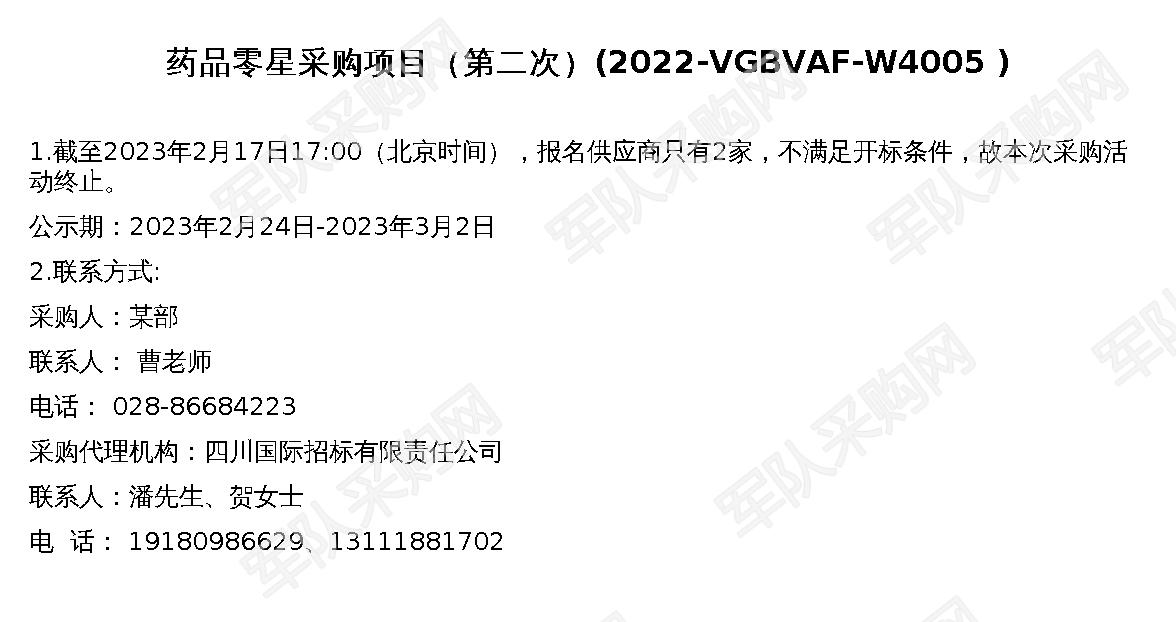 【军队采购】军队采购网药品零星采购项目(第二次)(2022-VGBVAF-W4005)