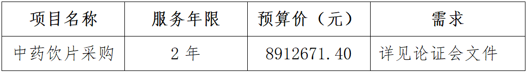 根据医院《项目采购管理办法》相关规定,拟在近日将组织相关专家对广西壮族自治区妇幼保健院中药饮片项目采购项目进行院内询价论证,欢迎符合《中华人民共和国政府采购法》规定的公司参与论证。现将相关论证信息公告如下: