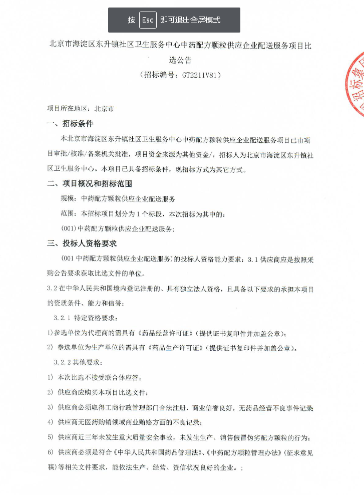 【海淀区东升镇社区卫生服务中心】北京市海淀区东升镇社区卫生服务中心中药配方颗粒供应企业配送服务比选公告
