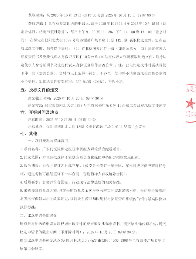 【保定市广安门医院保定医院】河北省广安门医院保定医院中药配方颗粒供应配送项目比选公告
