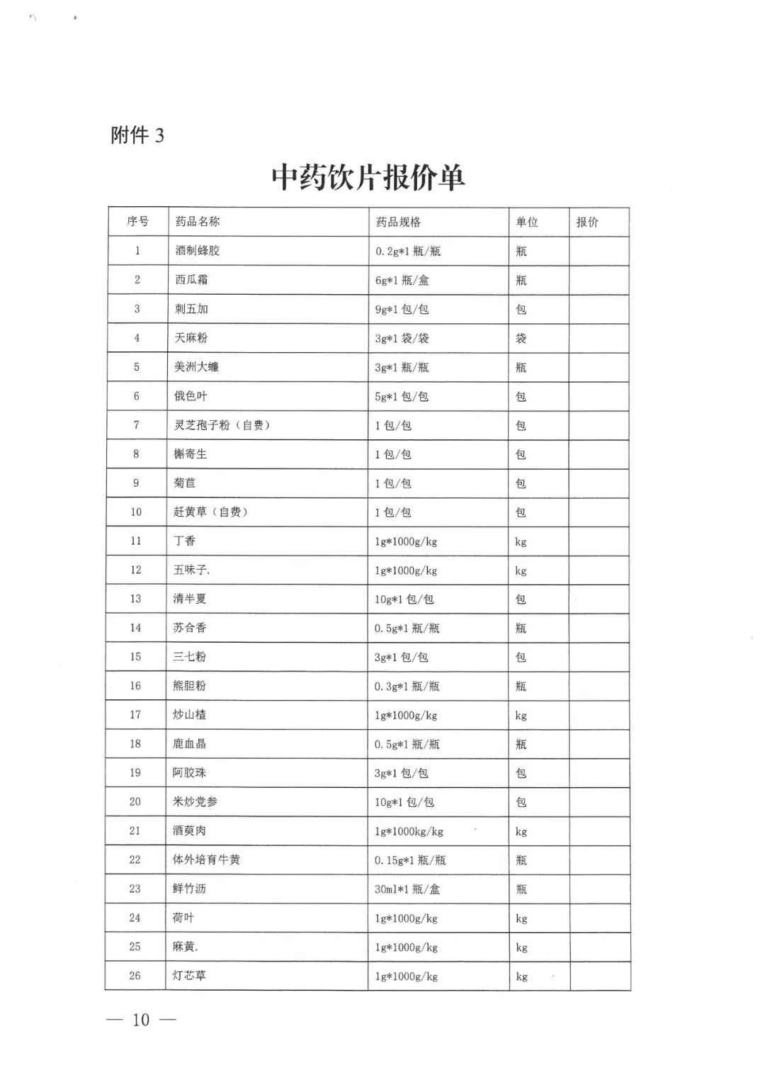 询价日期:另行通知