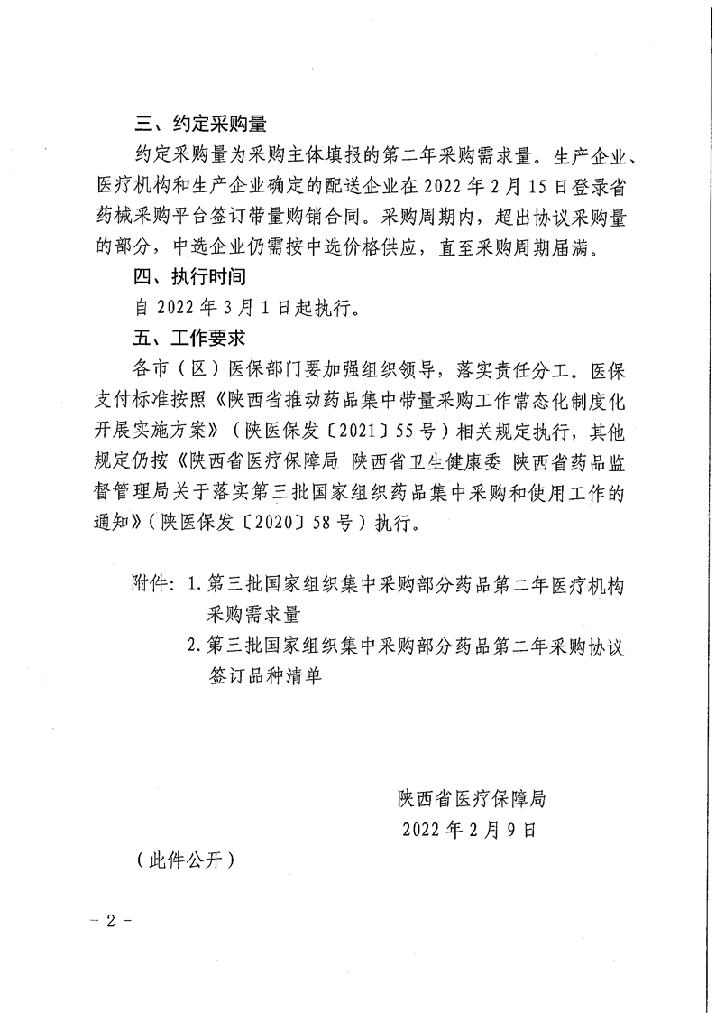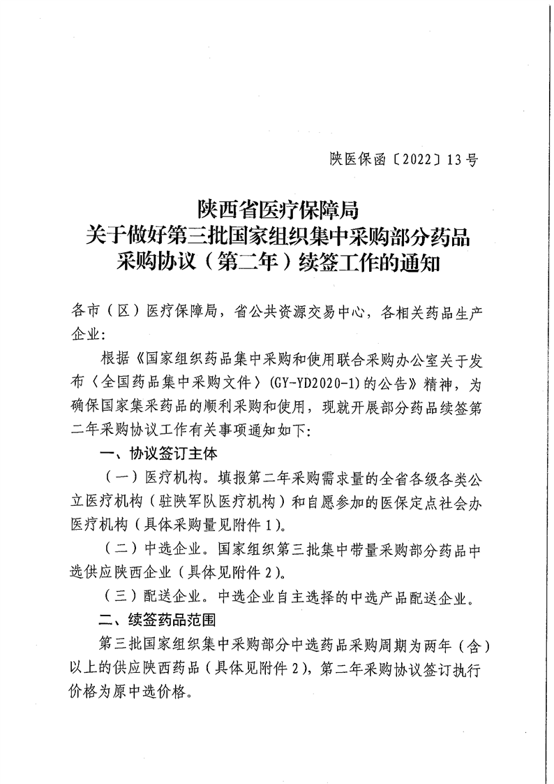 【陕西】陕西省医疗保障局关于做好第三批国家组织集中采购部分药品采购协议(第二年)续签工作的通知