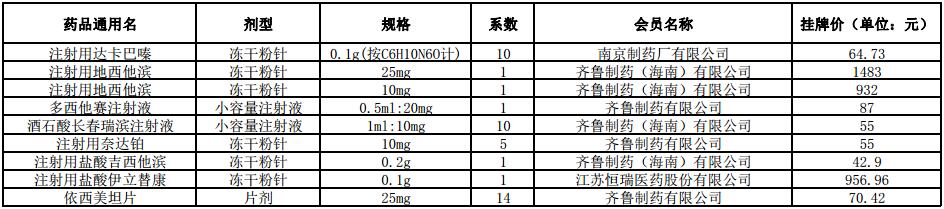 【重庆】重庆市抗癌药专项集中采购2021年3月企业申报价格公示