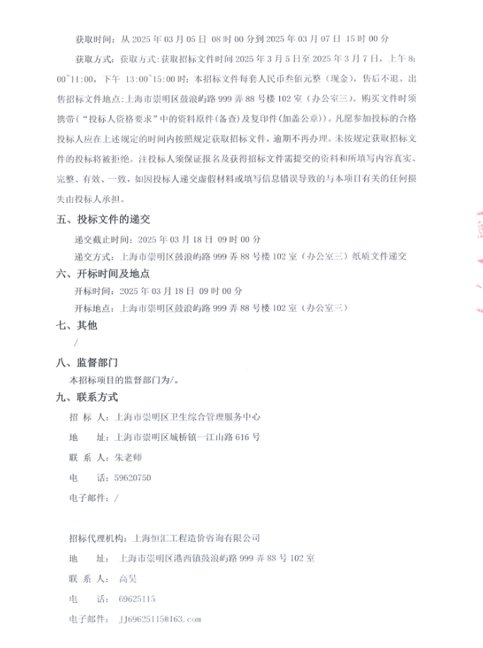 所属项目:上海市崇明区卫生综合管理服务中心