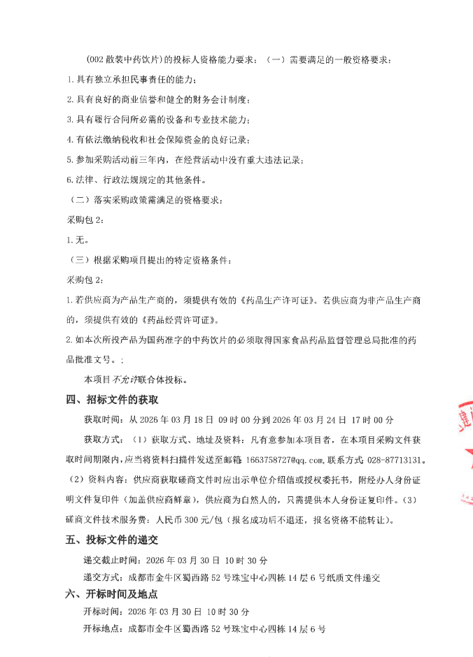 【成都市简阳市三合镇卫生院】四川省简阳市三合镇卫生院2026年中药配送服务采购项目竞争性磋商采购公告