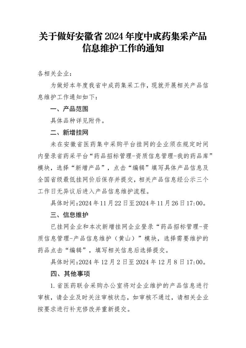 为做好本年度我省中成药集采工作,现就开展相关产品信息维护工作通知如下:
