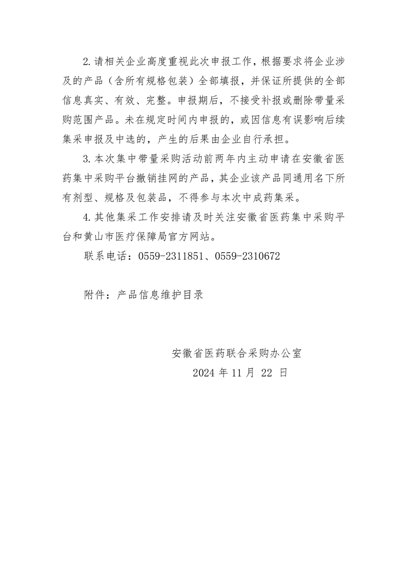 4.其他集采工作安排请及时关注安徽省医药集中采购平台和黄山市医疗保障局官方网站。