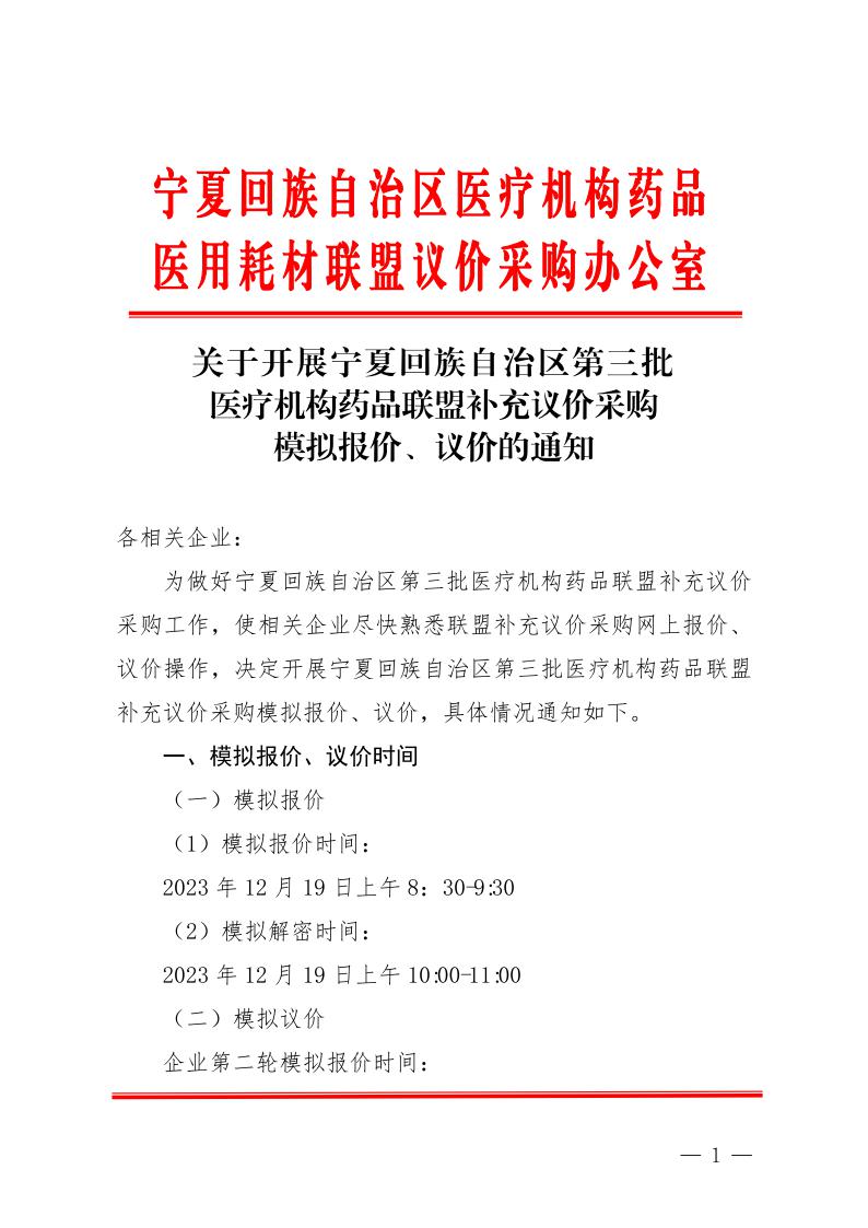 为做好宁夏回族自治区第三批医疗机构药品联盟补充议价采购工作,使相关企业尽快熟悉联盟补充议价采购网上报价、议价操作,决定开展宁夏回族自治区第三批医疗机构药品联盟补充议价采购模拟报价、议价,具体情况通知如下。