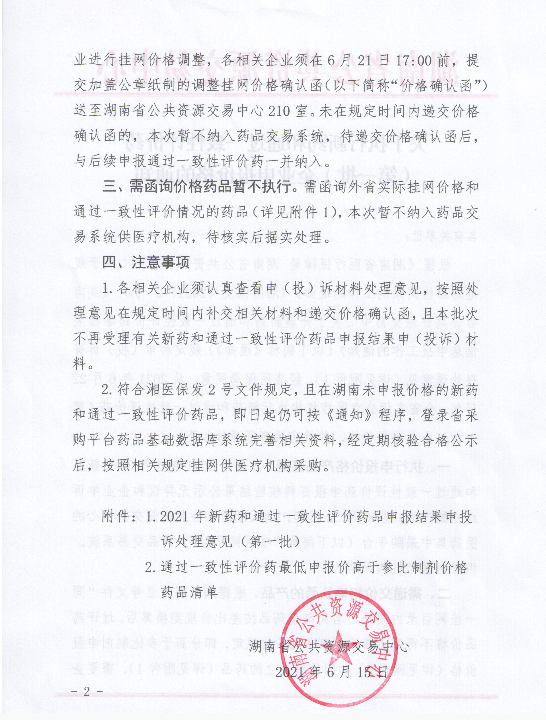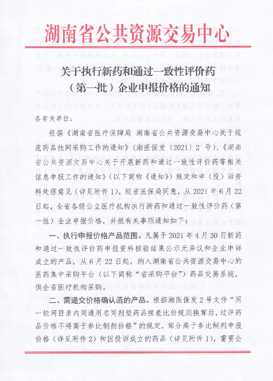 【湖南】2021年湖南省关于执行新药和通过一致性评价药(第一批)企业申报价格的通知