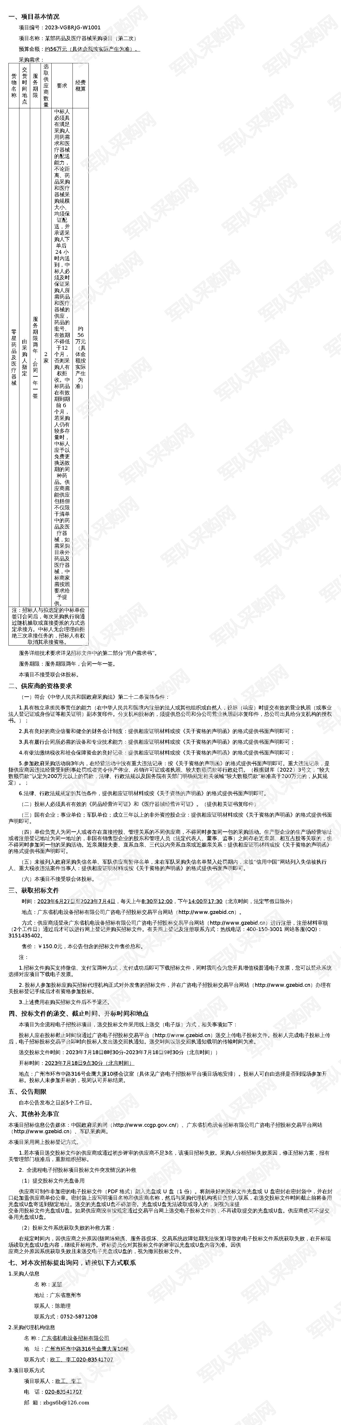 【军队采购】军队采购网某部药品及医疗器械采购项目(第二次)招标公告(2023-VGBRJG-W1001)