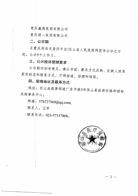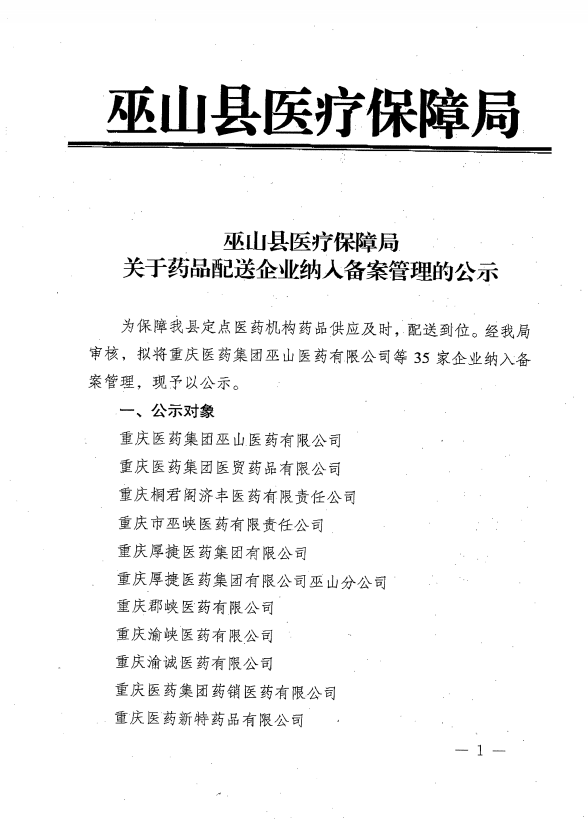【重庆】重庆市巫山县医疗保障局关于药品配送企业纳人备案管理的公示