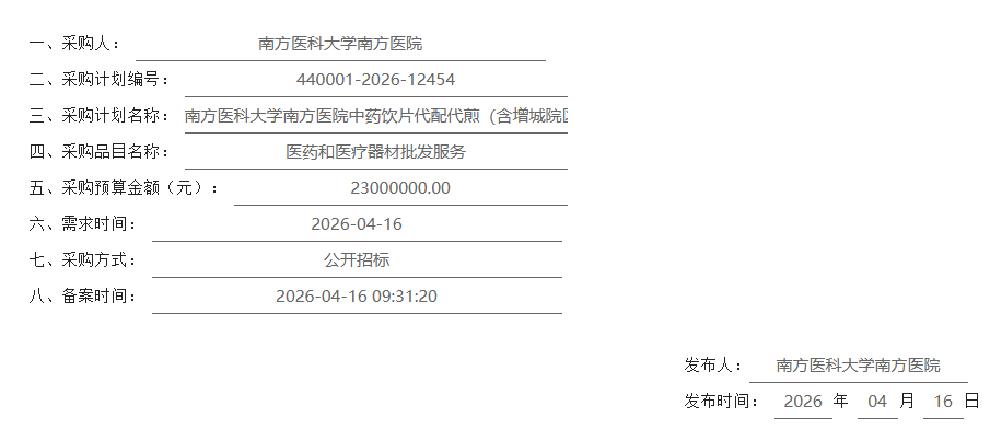【南方医科大学南方医院】广东省南方医科大学南方医院中药饮片代配代煎(含增城院区)服务(含临方定制代加工服务)