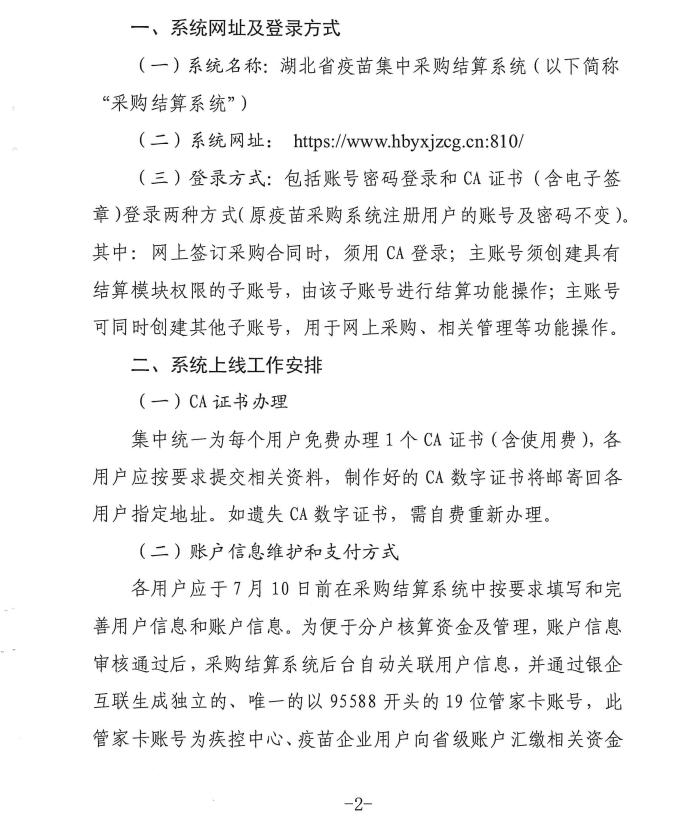(一)系统名称:湖北省疫苗集中采购结算系统(以下简称“采购结算系统”)