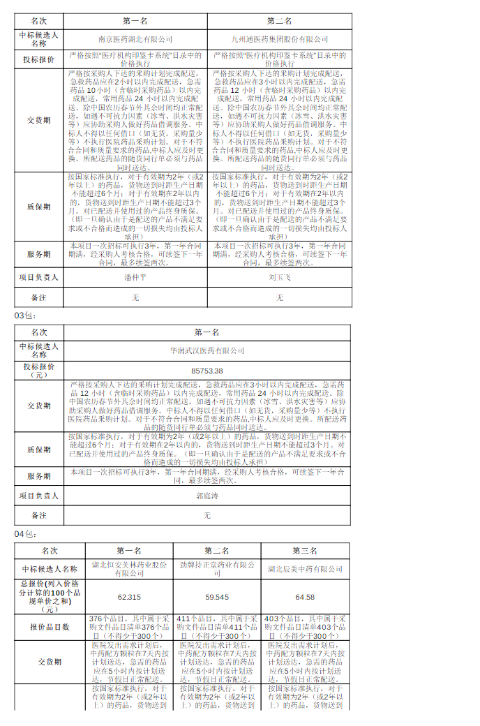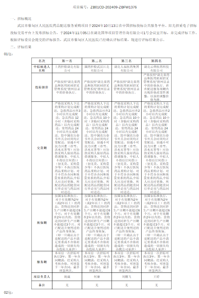 【武汉市蔡甸区人民医院】湖北省武汉市蔡甸区人民医院药品配送服务采购项目评标结果公示
