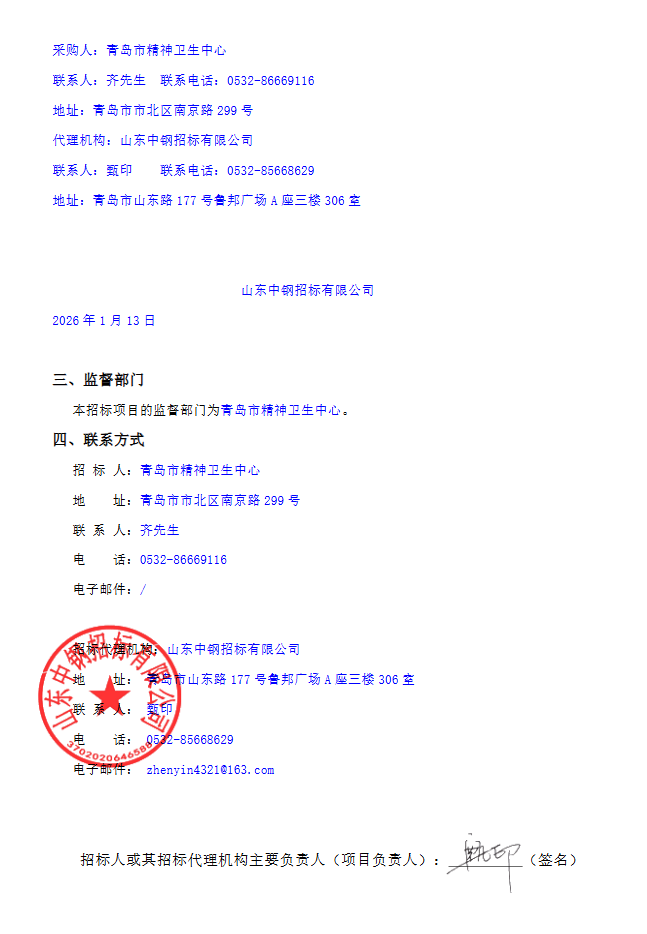 【青岛市精神卫生中心】山东省青岛市精神卫生中心中药配方颗粒剂服务项目二次招标中标公告